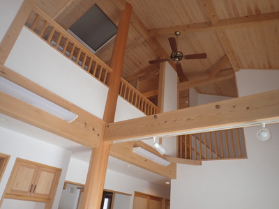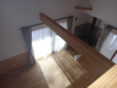 | 1階リビング 15.5帖、吹き抜けです。 | ||