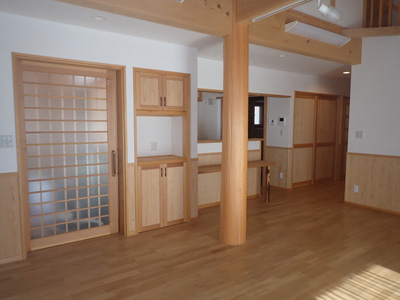 | 台所です。大工さんが作った造作のキッチンです。背面には収納たっぷりです。 | ||
